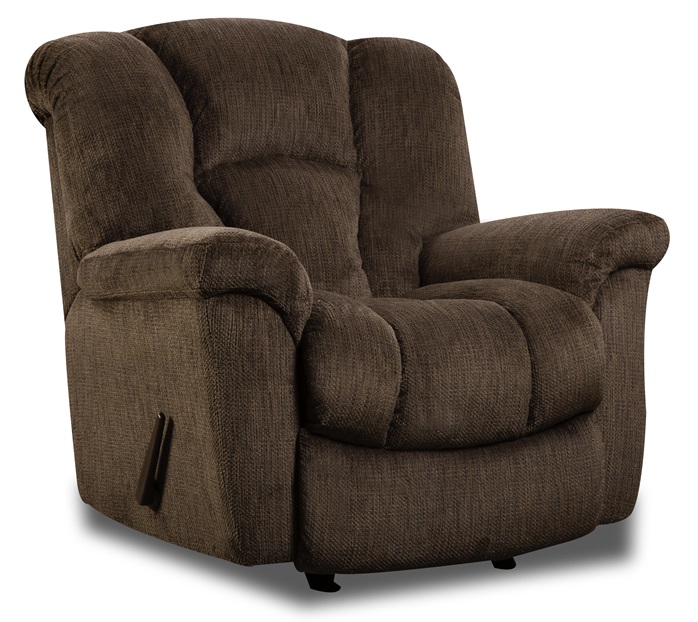 The King of Comfort Halston Rocker Recliner features plush, pad-over chaise seating and overstuffed arm pads. This is a large-scale recliner with a 44" back. The 100% polyester cover is easy to maintain.